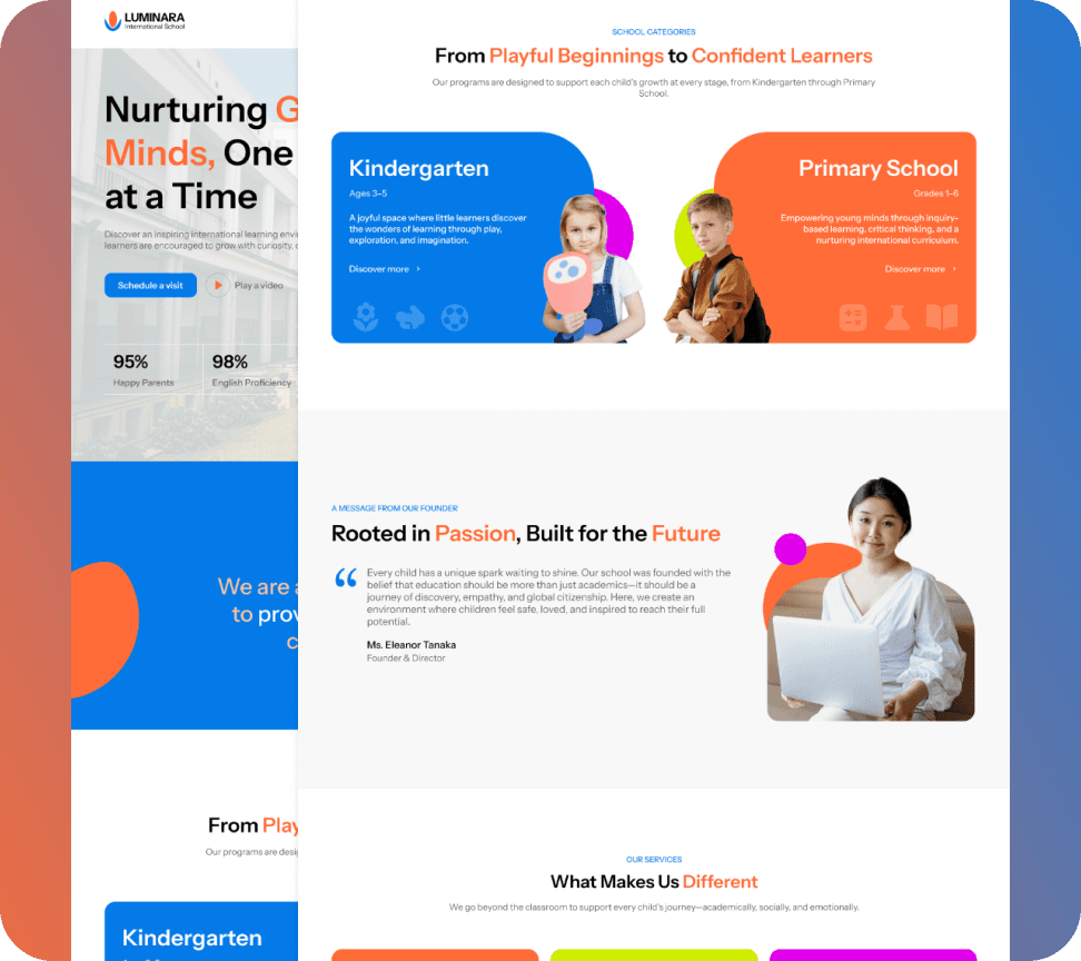 Landing page exploration for international school